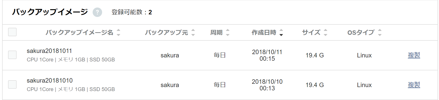 一覧から複製することでバックアップからインスタンスを建てることが可能になります。